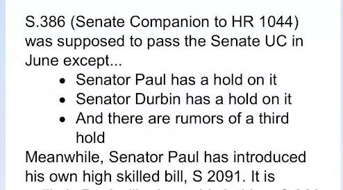 周四“一致同意”已定-Mike Lee亲口确认,请去DC紧急支援Durbin》《美移民律师界“教父”库兹班撰文反S386绿卡改革》《9.25 HR1044/S386:今明两天极可能强行闯关,传支持方周四组织去DC》《背水一战 星火燎原》《游说美国大学校长反 S.386 实战【9月23日更新】》《反S386法案:从打酱油到变健将,最后一周冲刺!》《再次危急!HR1044/S386将于下周二再次“一致同意”》《反S386法案险胜!形势依然严峻,下周会卷土重来》《绿卡改革的HR1044/S386法案有哪些危害?》《华人技术移民最后的决战》《S386周四将无投票通过,这次真完了?!》《移民改革:国会大佬听了我们的声音!》《走!见议员去!——小草根的大政治》《S386新战场:电话国会预算委员会。一分钟一个!》《【十万火急】反绿卡改革集结号-电话加州参议员Feinstein!》《华人反S.386/HR1044联盟成立声明》《绿卡改革:一起点亮“新华一代”风雨飘摇的美国梦!》《移民改革:留学生和H1B们,现在找母校救你们!